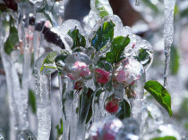 #49 In den letzten Wochen hat die Rebe den Wassergehalt der Zellen vermindert und Stoffe darin eingelagert, um sich vor den winterlichen Frost zu schützen. Würde es einen extrem schnellen Wintereinbruch geben, würde die Pflanze auch bei wesentlich höheren Temperaturen Schaden davontragen. Bei einem normalen Herbst verträgt sie abhängig von der Sorte zwischen -17°C und -25°C. Gäbe es tiefere Temperaturen müsste man die Rebe mit einer Frostschutzberegnung schützen. Dabei spritzt man bei Minusgraden mit Wasser dauerhaft eine Eisschicht über die Pflanze, da darunter die Temperatur konstant bei etwa -1°C gehalten wird, selbst bei Außentemperaturen von -40°C.